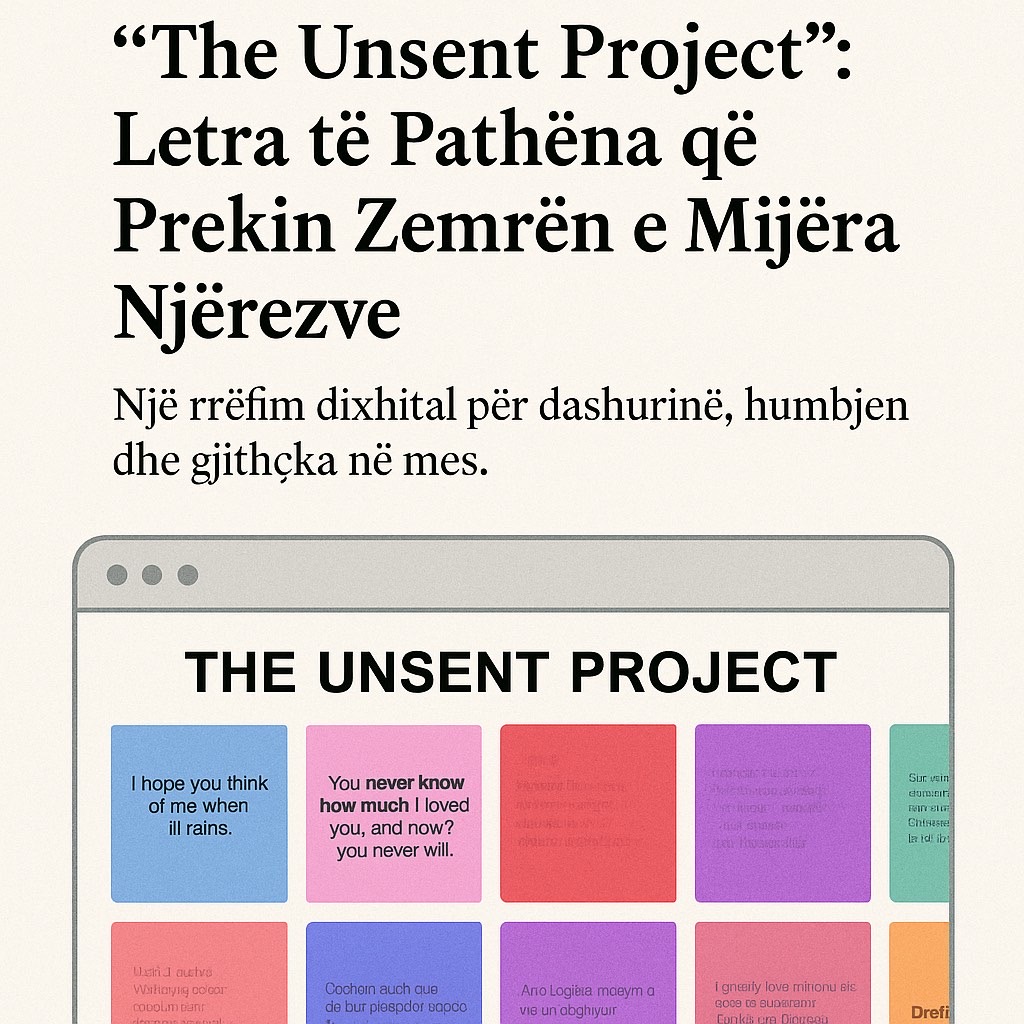 Në një botë ku shpesh flasim shumë, por themi pak, “The Unsent Project” është një hapësirë ku e pathëna është e mirëpritur. Kjo platformë i jep zë atyre që nuk patën guxim të flasin. Nuk kërkon emër, as adresë — vetëm ndjenjë.