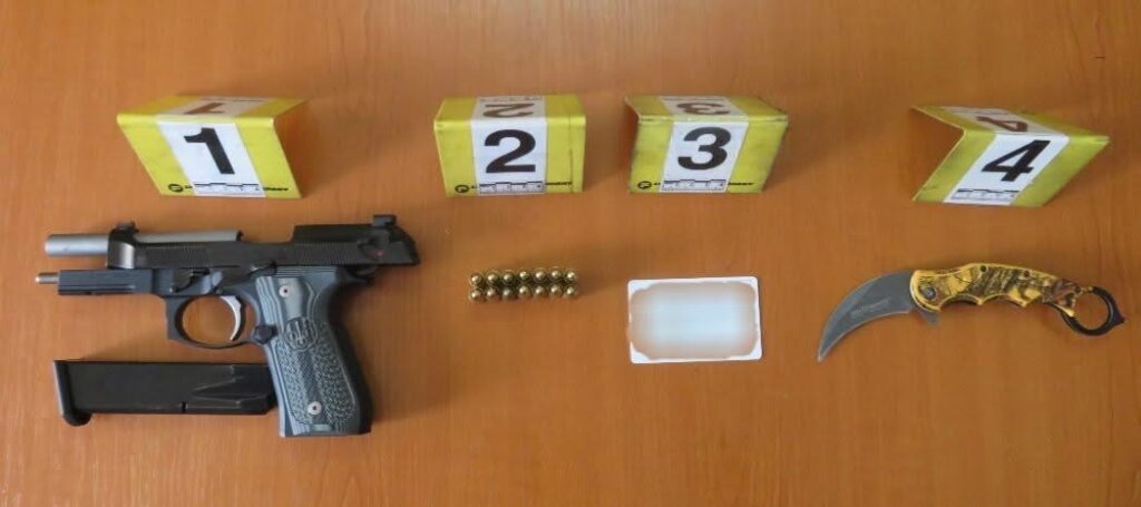 Nga vendi i ngjarjes, policia ka sekuestruar një armë zjarri me 14 fishekë si dhe një thikë të përdorur gjatë incidentit. Në kuadër të hetimeve janë siguruar prova materiale, përfshirë deklarata nga dëshmitarët dhe pamje të kamerave të sigurisë në ambientin ku ndodhi incidenti.