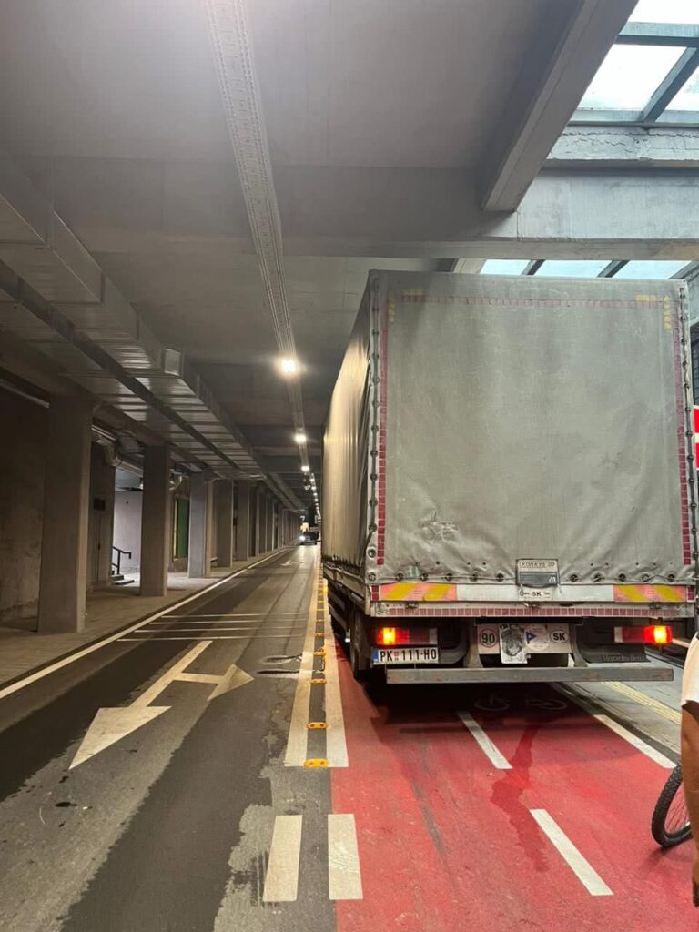 Një incident serioz është shënuar sot në zonën e Kurrizit, ku një kamion i peshave të rënda dhe me lartësi mbi kufirin e lejuar prej 3.2 metrash ka hyrë në mënyrë të paligjshme në tunelin e dedikuar për automjete të lehta dhe çiklistë.
