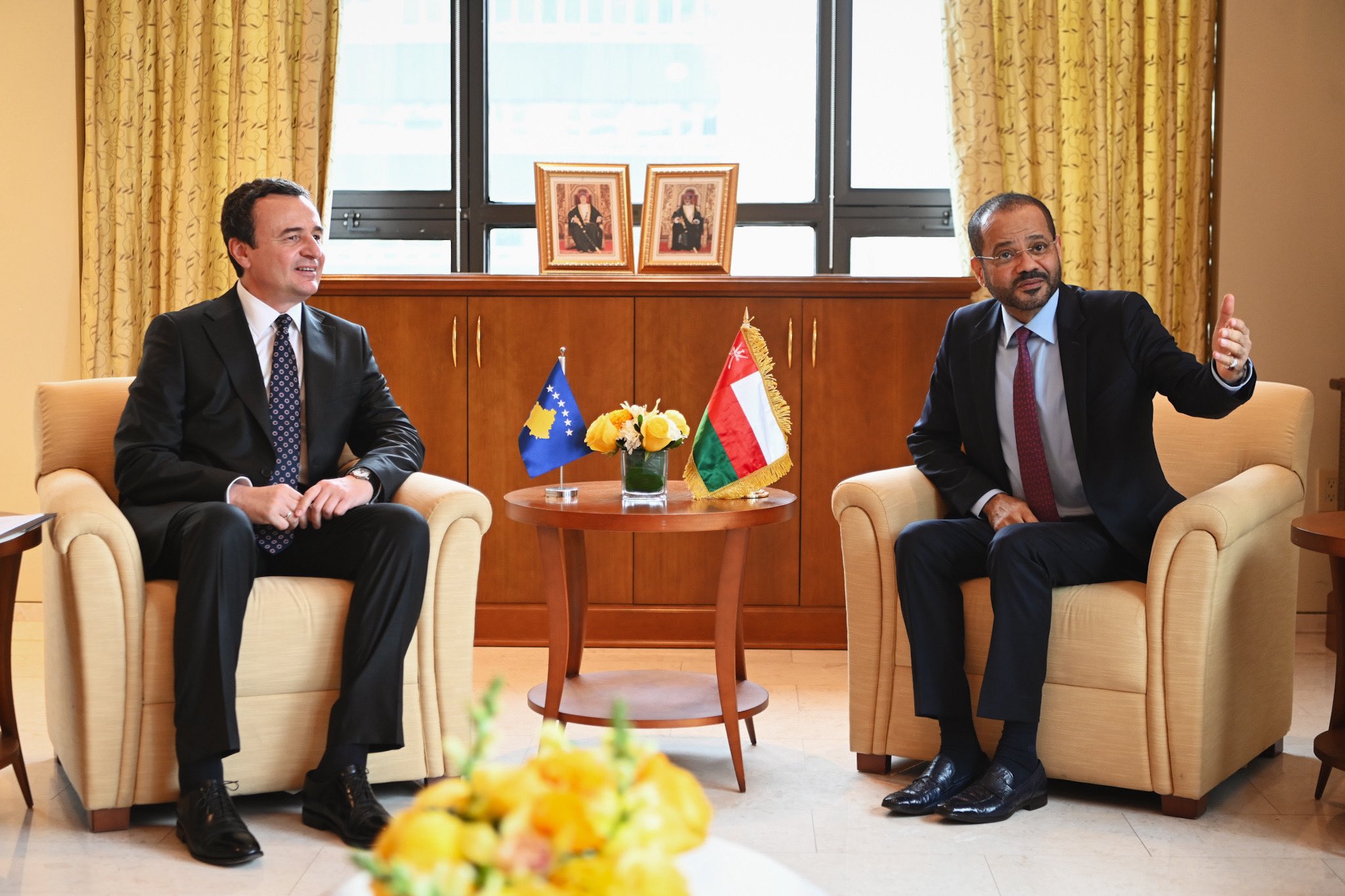 Kryeministri në detyrë i Republikës së Kosovës, Albin Kurti, i shoqëruar nga ministrja në detyrë e Punëve të Jashtme dhe Diasporës, Donika Gërvalla, zhvilloi një takim të rëndësishëm në New York me ministrin e Jashtëm të Sulltanatit të Omanit, Sayyid Badr bin Hamad bin Hamood Al Busaidi.