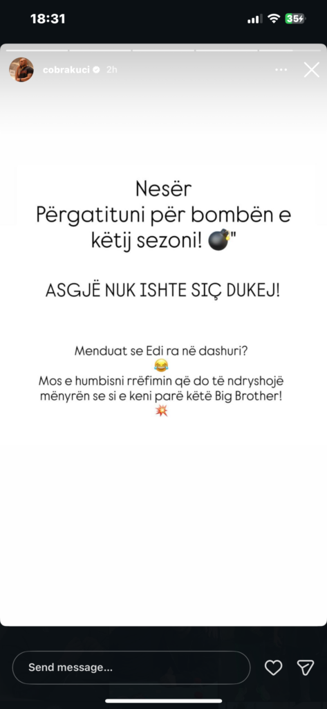 Ndërkohë, ndjekësit presin me kureshtje “bombën” e paralajmëruar nga CobraKuci, e cila pritet të hedhë dritë mbi prapaskena ende të pazbuluara të kësaj historie që po mban pezull publikun. 👀🔥