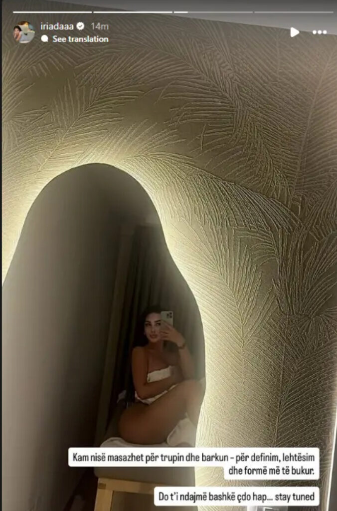 Në një Instastory të publikuar së fundmi, Ada shfaqet pranë një pasqyre, ku shihet pa rroba, ndërsa pjesët intime i ka mbuluar në mënyrë diskrete. Postimi ka ngjallur reagime të shumta dhe komente të zjarrta, duke “bombarduar” rrjetin në pak minuta.