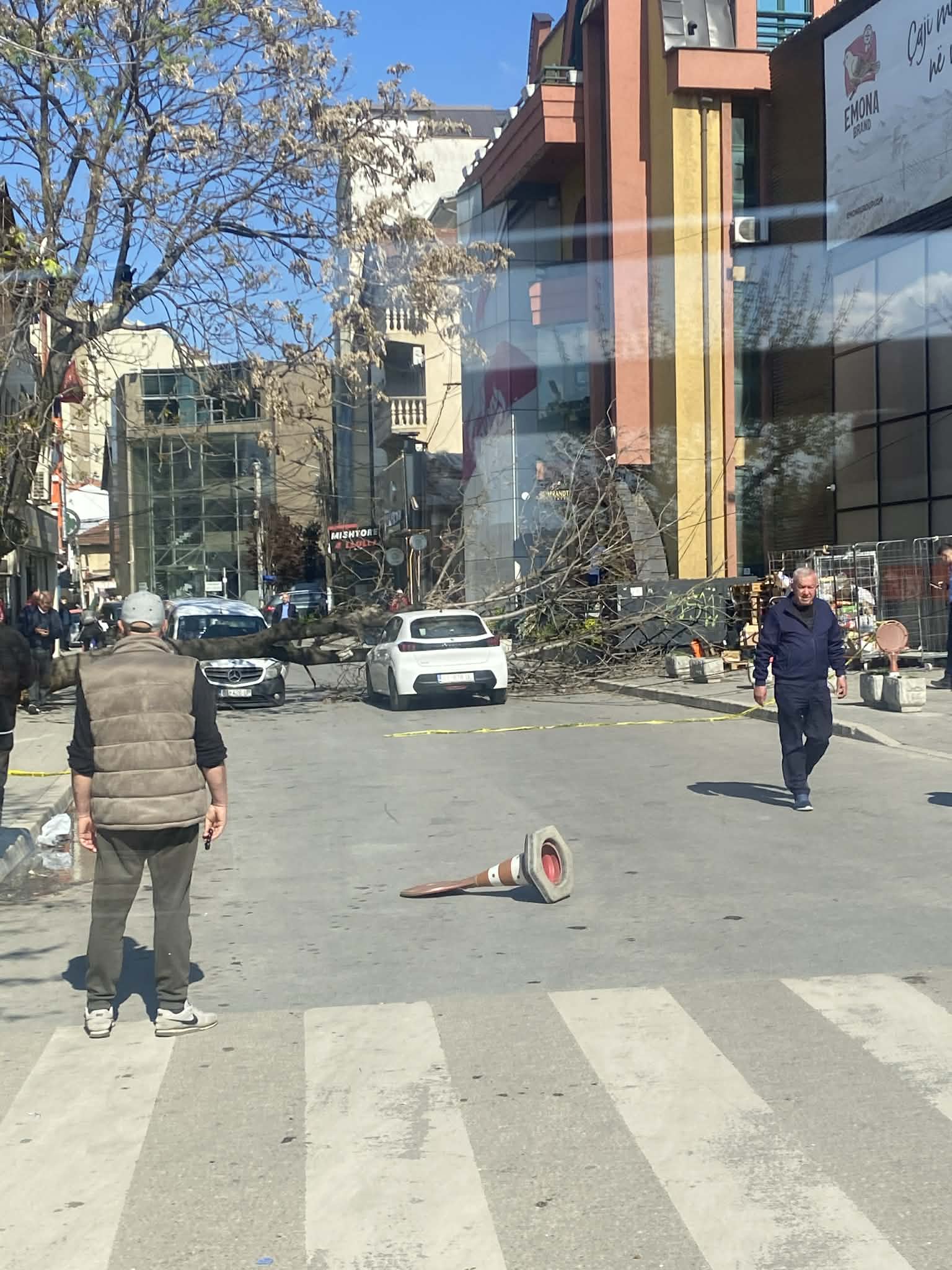 Qytetarët kanë ndaluar për të ndihmuar dhe për të larguar degët nga rruga, ndërsa pritet ndërhyrja e autoriteteve komunale për pastrimin e plotë të zonës.